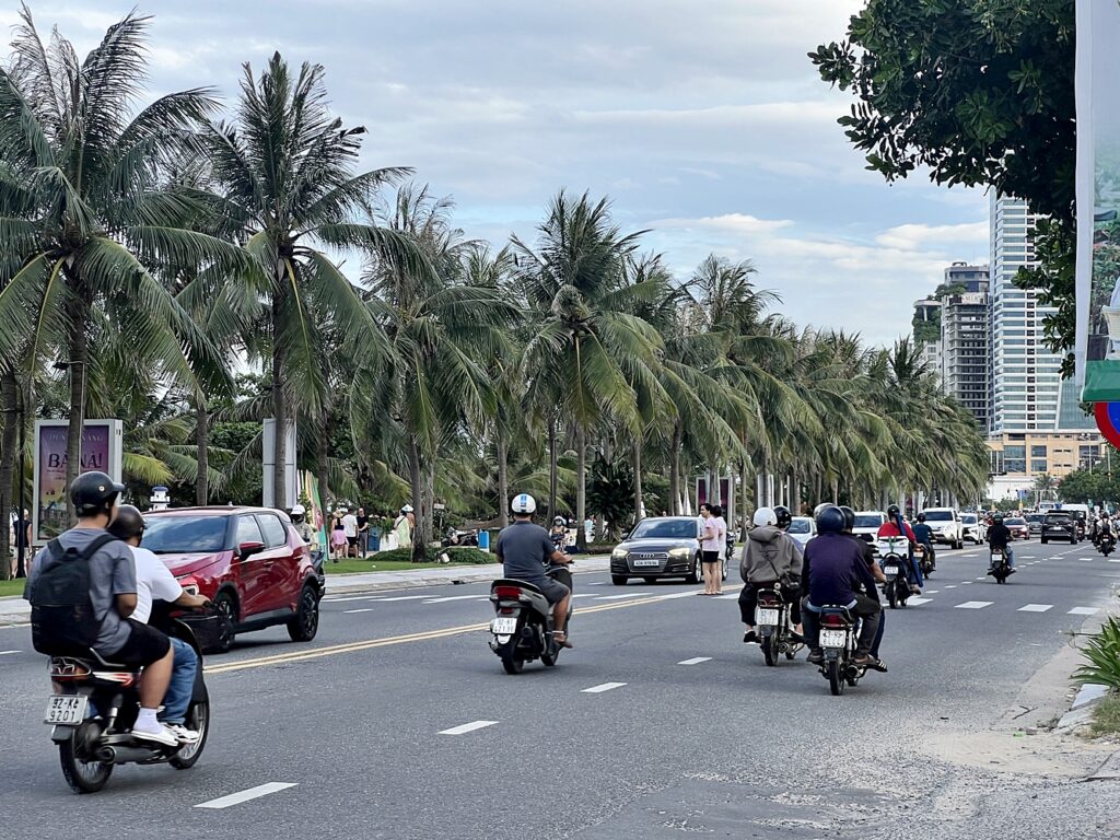 베트남 도로에는 오토바이와 차가 끊임없이 다닙니다. 하지만 신호등이 없는 횡단보도도 많다는 사실! 여행자들은 오토바이와 차량 행렬 속에서 어떻게 길을 건너야 할지 아찔해지는데요. 보행자가 멈춰 서 있으면 차가 멈추지 않습니다. 일정한 속도로 천천히 걸어가야 운전자들이 속도를 줄이며 피해가요. 처음에는 무섭지만, 몇 번 건너다 보면 적응되는 베트남식 교통 문화랍니다.
